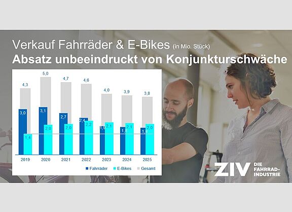 Am 11. März 2026 stellten die Verbände ZIV - Die Fahrradindustrie, Zukunft Fahrrad und der Verbund Service und Fahrrad (VSF) in einer Online-Pressekonferenz die Zahlen aus dem Fahrradmarkt zum Jahr 2025 vor.