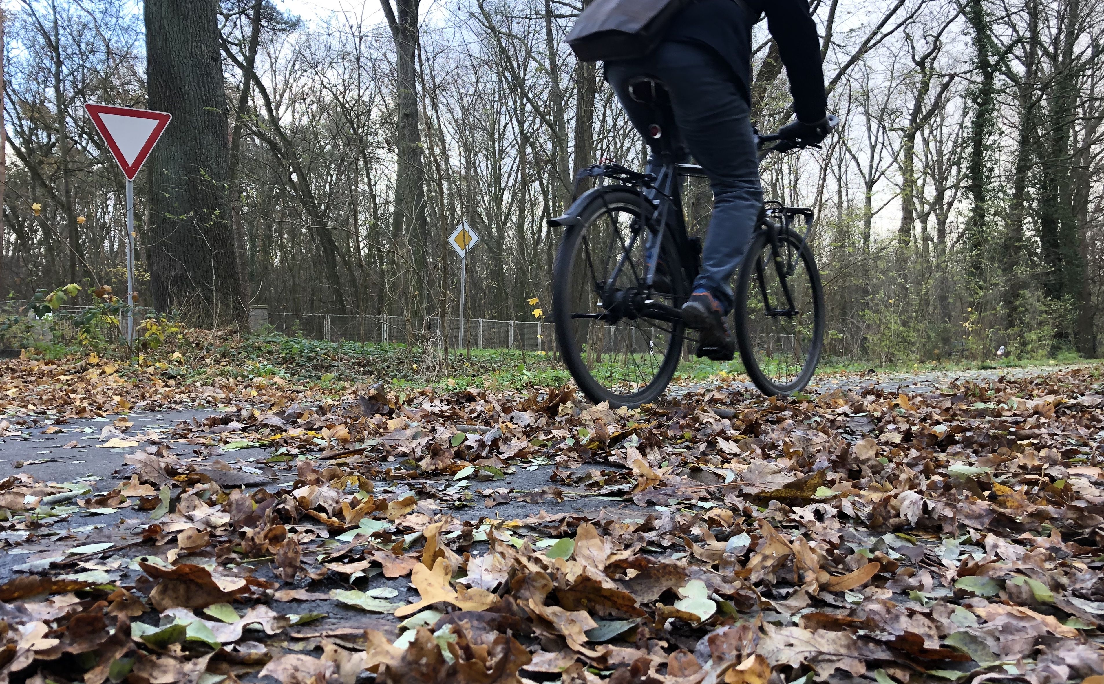 Mit Laub und Matsch bedeckte Radwege bringen Sturzgefahr © ADFC / Krone